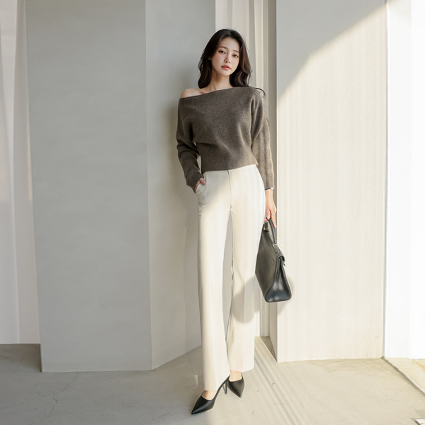 ぽかぽかした クロップド ボートネック ニット