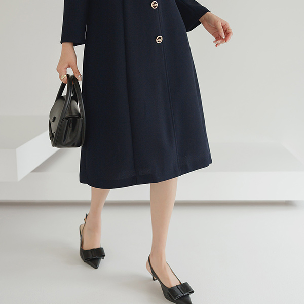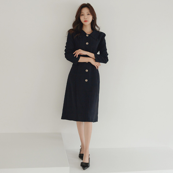 Romance カラーネック クラシック ゴールド ベルト ワンピース