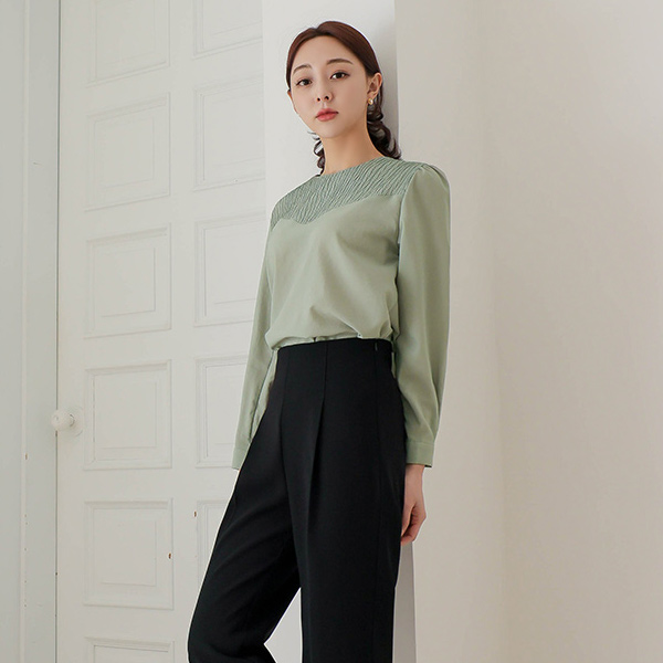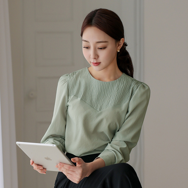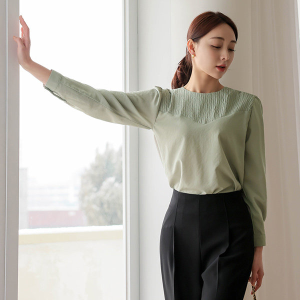 リンクル 配色 弾力 ブラウス