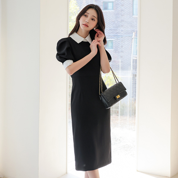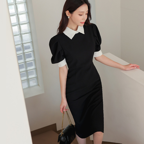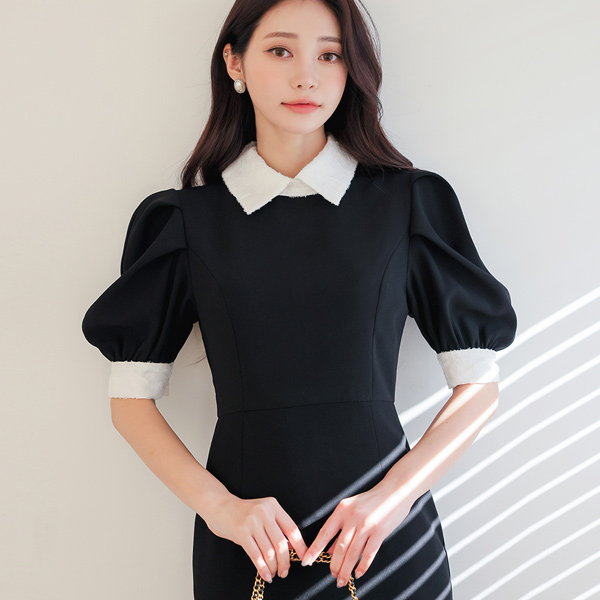 クラウド フェザー 配色 ロマンチック パフ袖 ワンピース