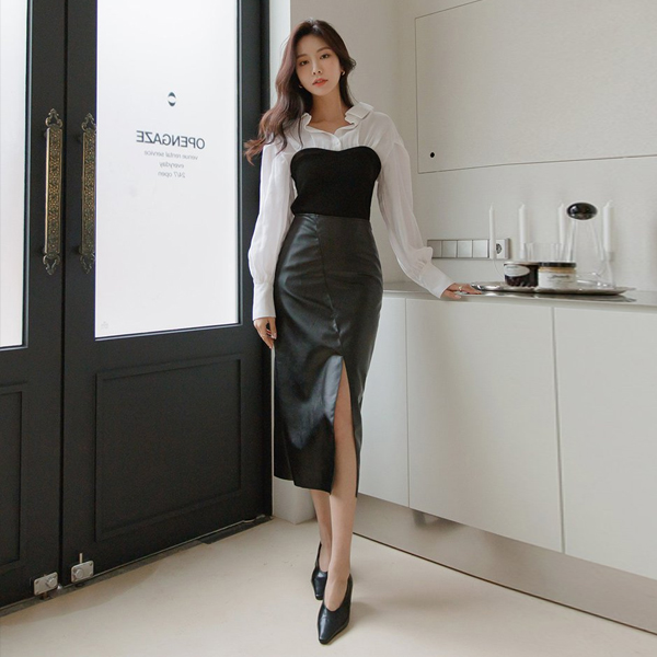 レイヤード コール天 ニット トップ シック シャツ