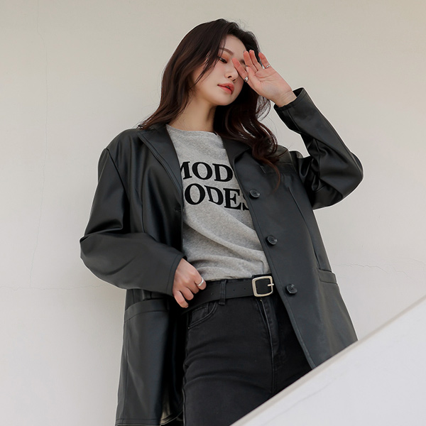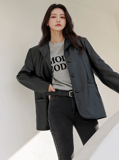 Eco レザー ステッチ 基本フィット ジャケット