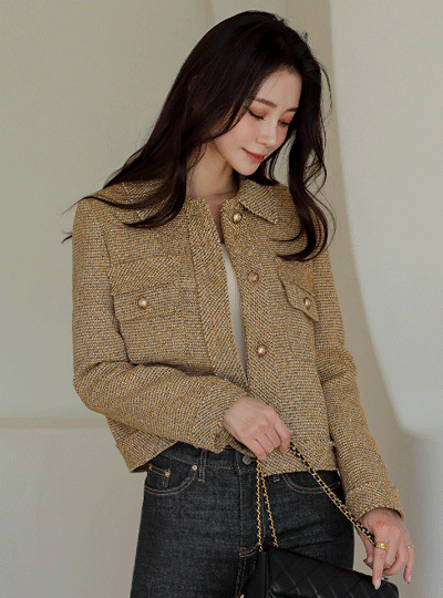 フリンジ シングルカラー ツイード ジャケット