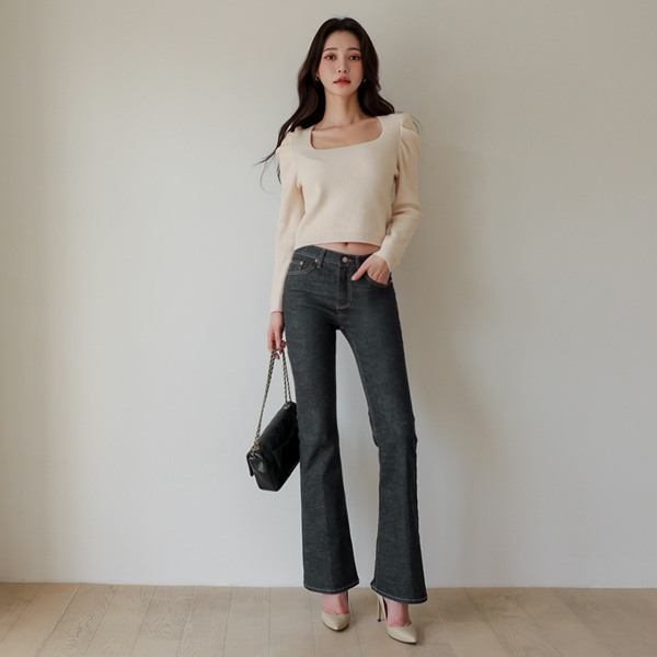スクエアネック ピンタック パフ袖 ニットティーシャツ