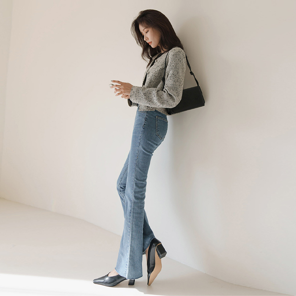 スリム スクエア ブロックヒール パンプス ヒール