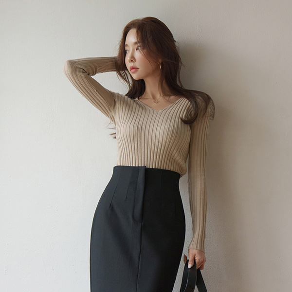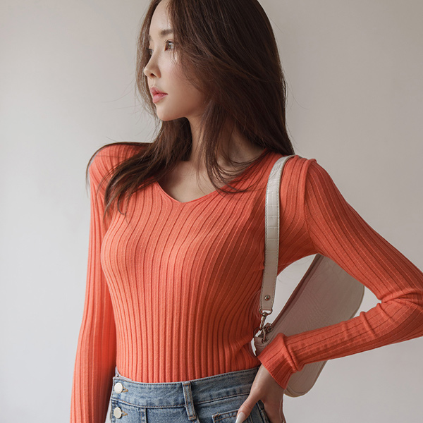 デーリー ビビッド カラー ブイネック コール天 ニット