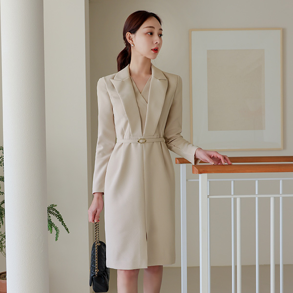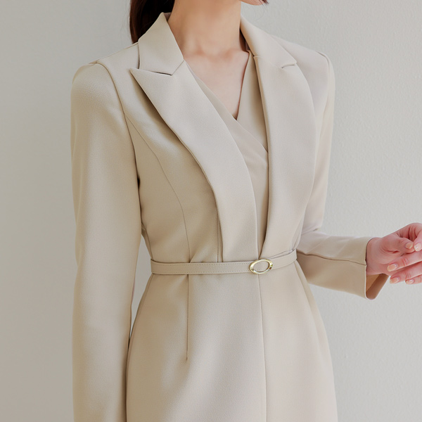 Blanc ウエーブ ノーカラー 二重 ペプラム ジャケット(spring)