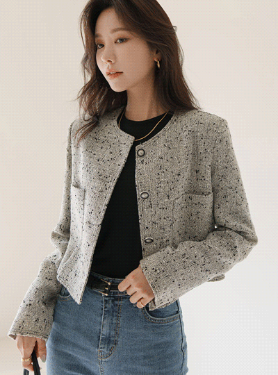 骨董こっとう ボタン ポイント ツイード クロップド ジャケット