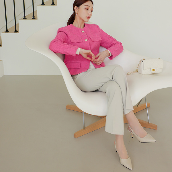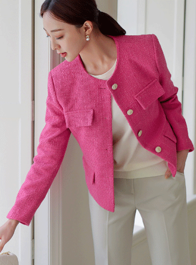 ポイント カラー ラウンド ツイード ジャケット