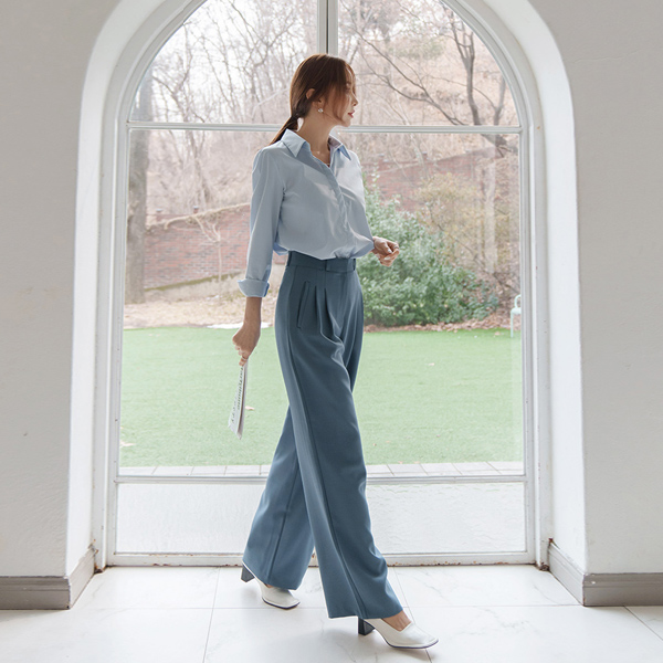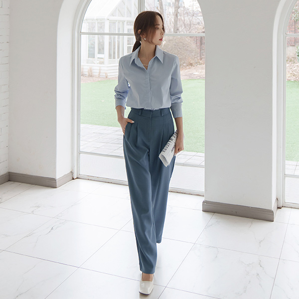 ベーシック 細かく美しい テクスチャ 隠しボタン シャツ