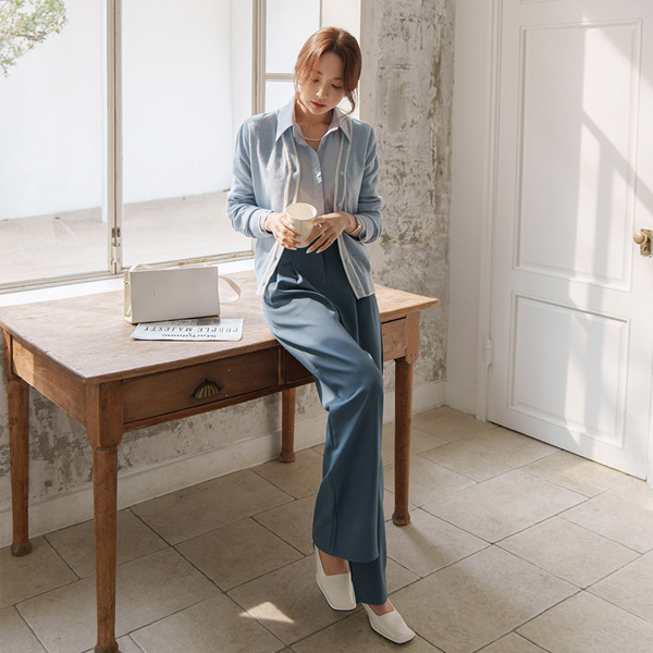 春季 配色 ダブル ライン ウール カーディガン