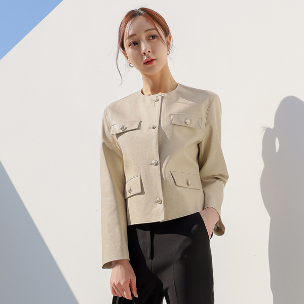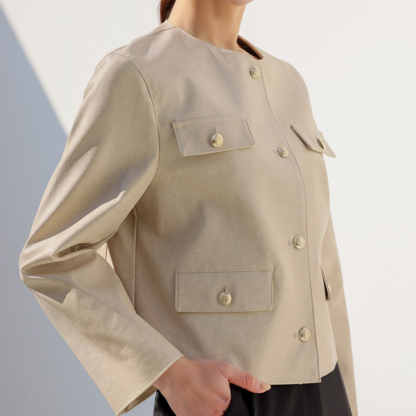 Coco ラウンドネック Eco レザー ジャケット
