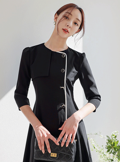 トレンチ サイド ボタン フレア 配色 ワンピース
