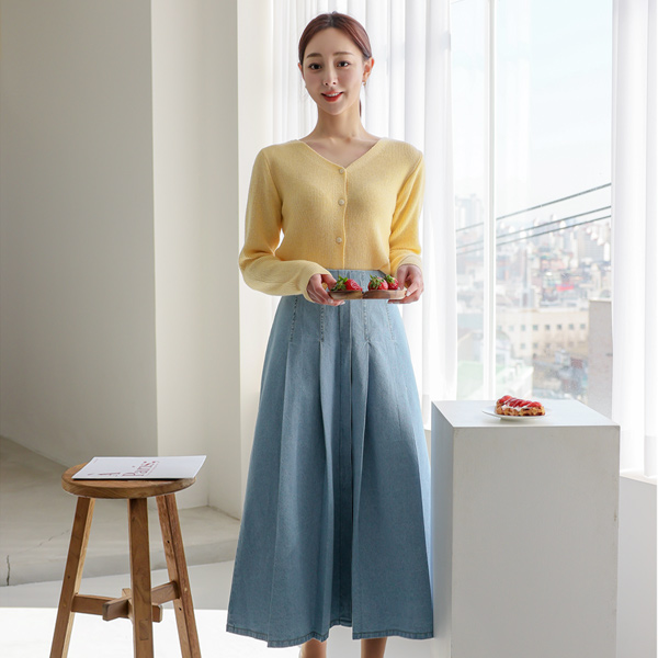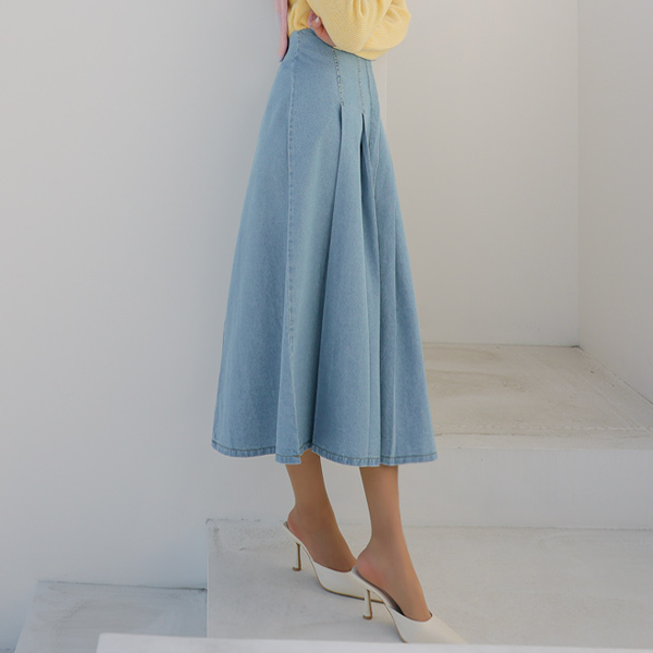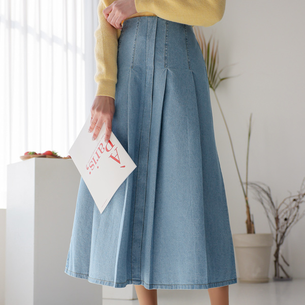 ワイド プリーツ デニム ハイウエスト スカート
