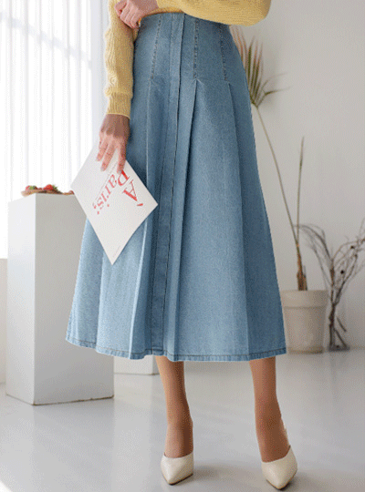 ワイド プリーツ デニム ハイウエスト スカート