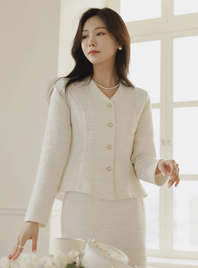 shasha ブイネック ツイード ブラウス ジャケット