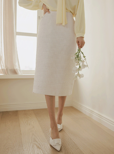 shasha ツイード 後面バンド スカート