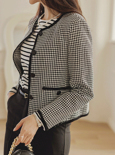 ミニ チェック パタン ポイント クロップド ジャケット