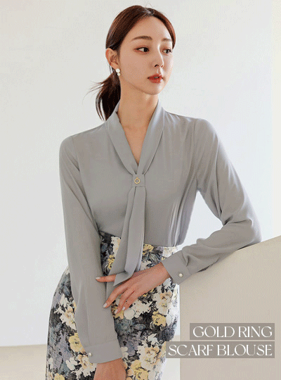 ゴールドわ 飾り スカーフ ブラウス