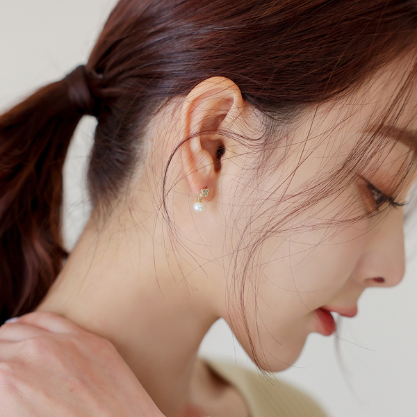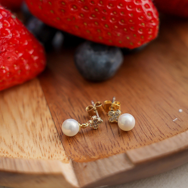 キュービック 花柄 真珠 ドロップ イヤリング