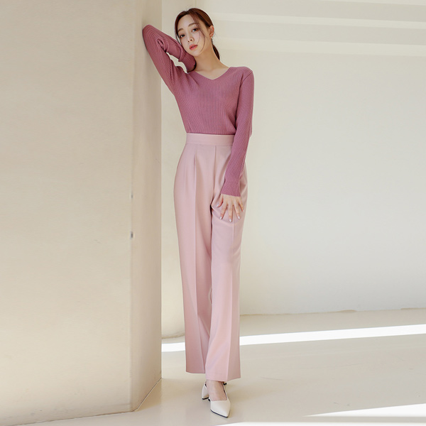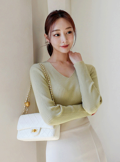 Macaron Vネック コール天 ソフト ニットティーシャツ