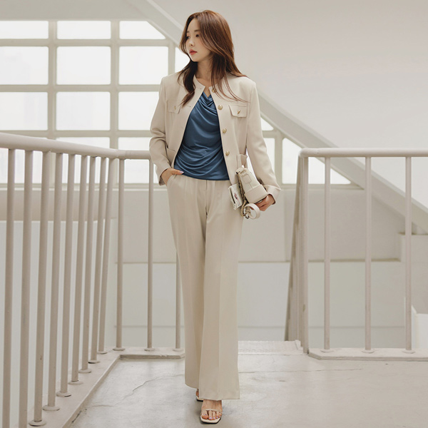 ベーシック ゴールド ボタン ライン ノーカラー ジャケット