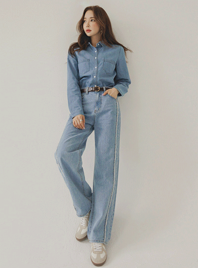 トレンディー ムード ライン タッセル ポイント デニムパンツ
