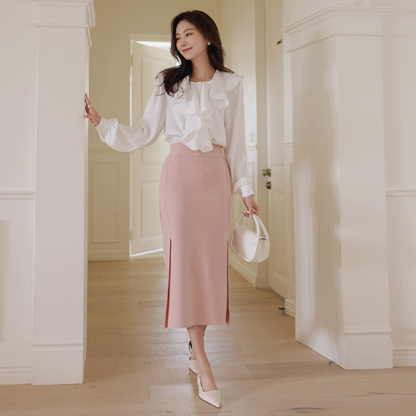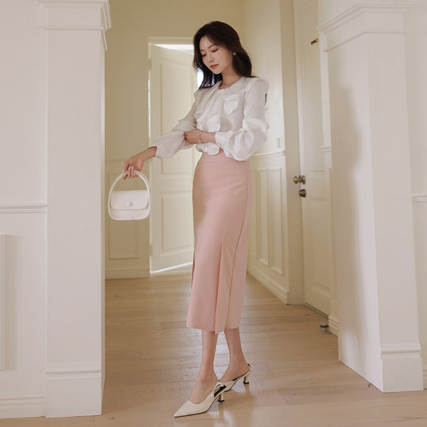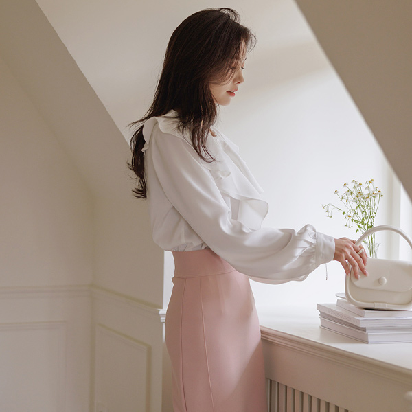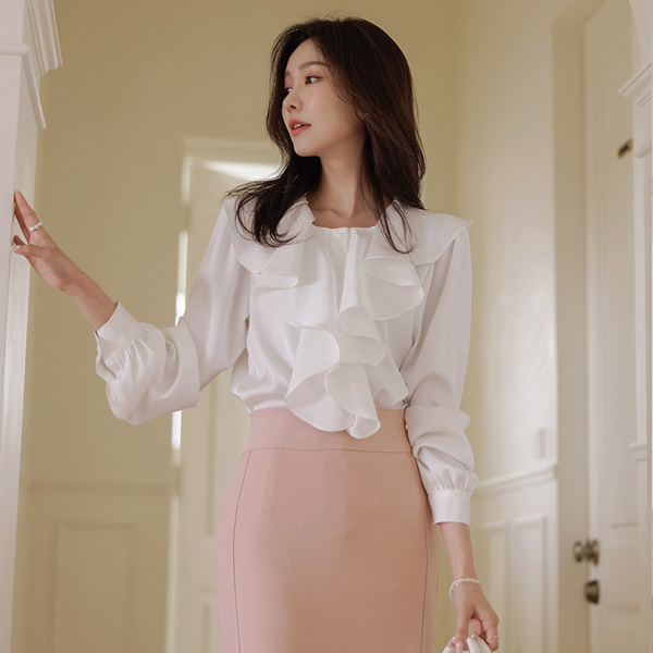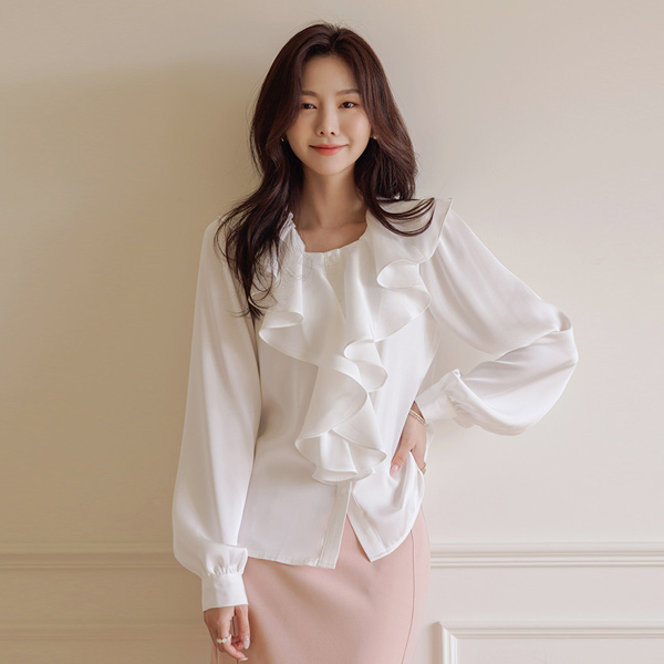 豊かな Ellin フリル グロッシー ブラウス