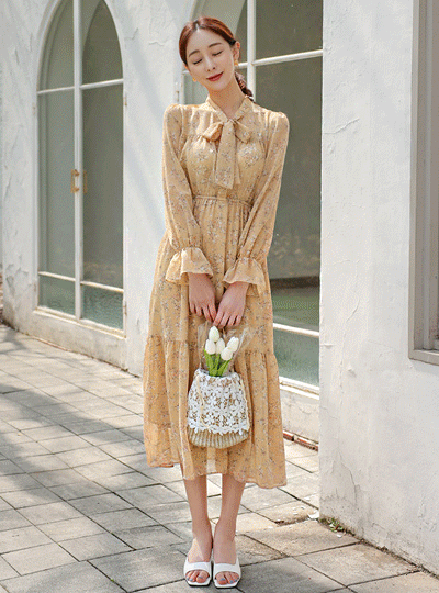 花柄 タイ ラッフル シフォン ワンピース