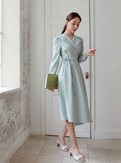 シングルカラー ラップ フレア ワンピース