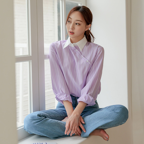 斜線 ボタン 配色 カラー ストライプ シャツ