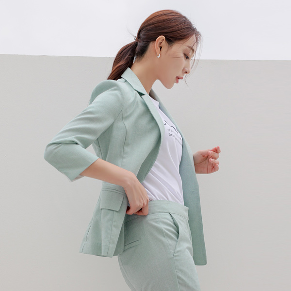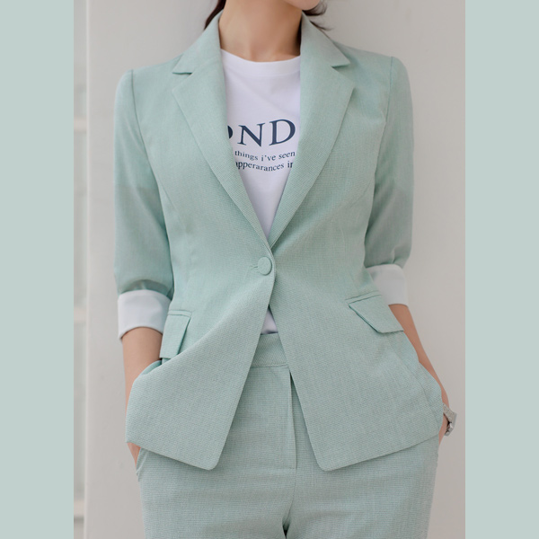 小さなチェックパターン リネン テクスチャ 袖 配色 ジャケット