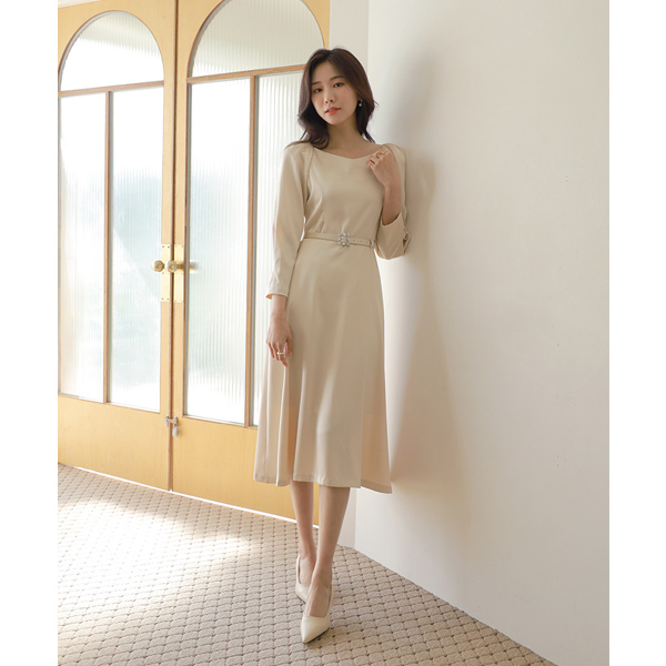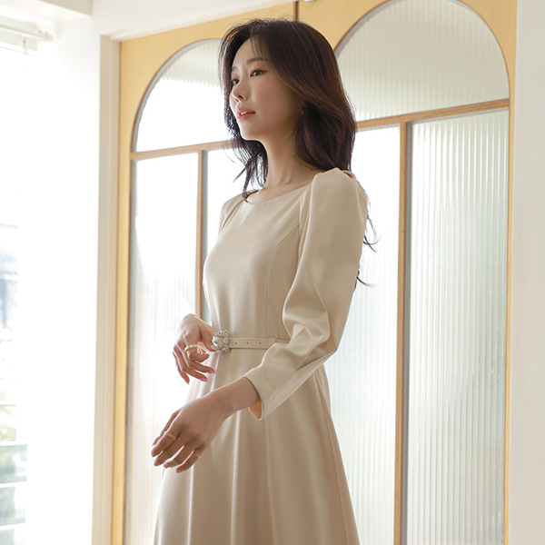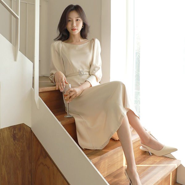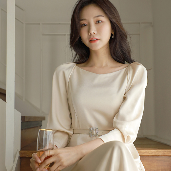 Grace ベルト (セット) サテン ロング Aライン ワンピース