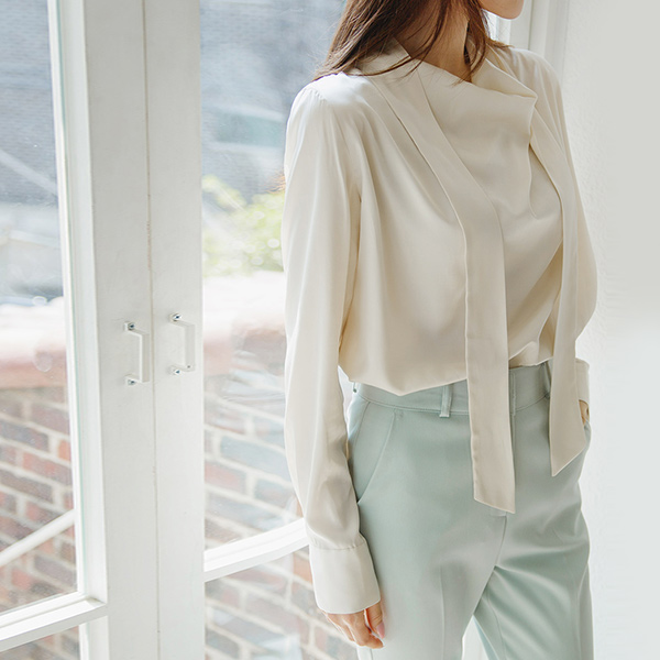 グロッシー plain リボン タイ ブラウス