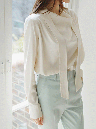 グロッシー plain リボン タイ ブラウス