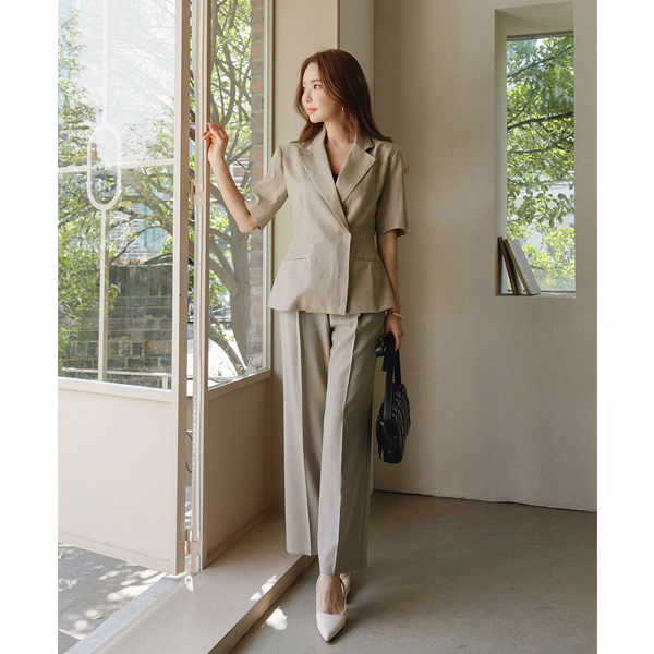 半そで カラー リネン スリムライン ジャケット