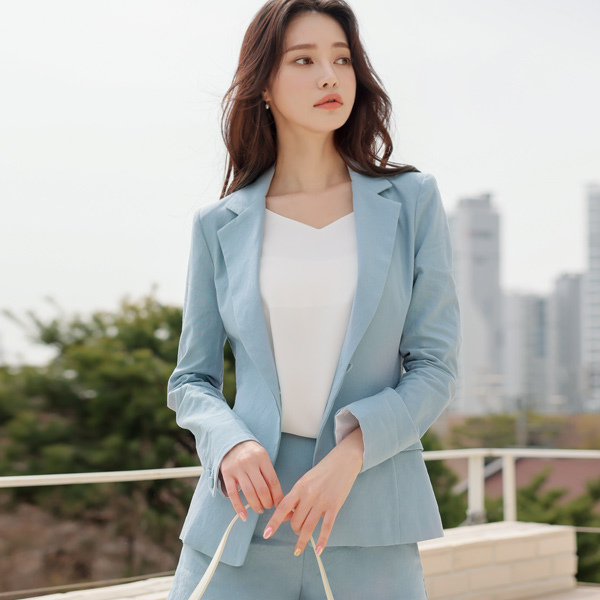 ワンボタン テーラード 配色 スリム リネン ジャケットⅡ