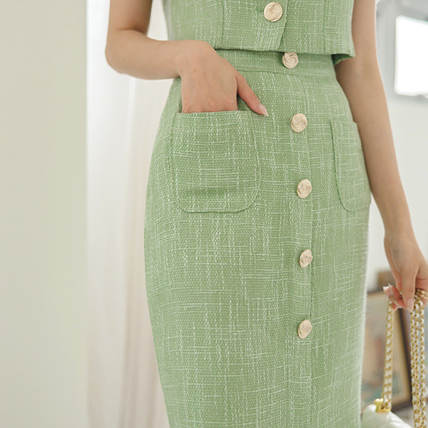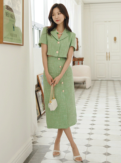 ラグジュアリー ゴールドボタン ツイード クロップド ジャケット