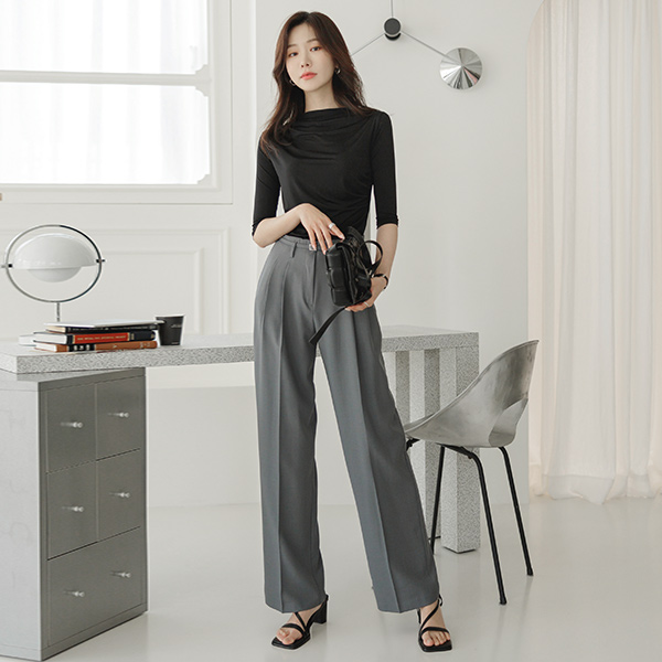 Soft シャーリング ポイント セミハイネック ティーシャツ