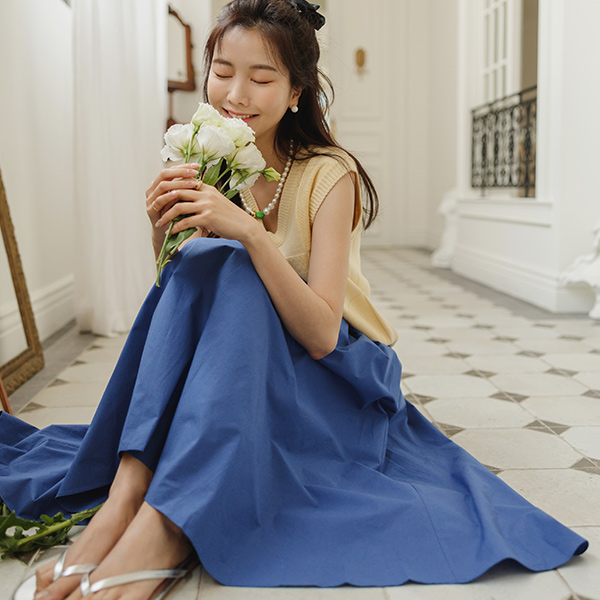 豊かな Aライン ピクニック コットン ロング スカート