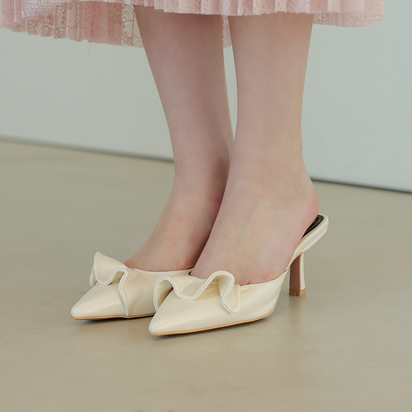 ウエーブ フリル ミュール スティレット ヒール
