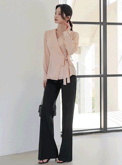 ウエスト 切開ライン ラップブラウス