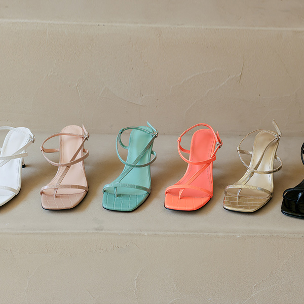 エンボスレザー ストラップ サンダル ヒール