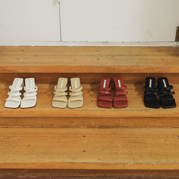 スクエア 紐 クロス ディテール サンダル ヒール