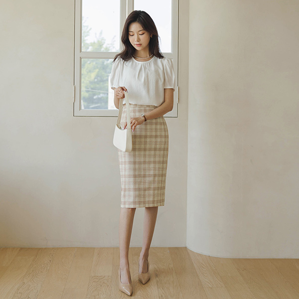 チェック パタン ポイント テンセル Hライン スカート