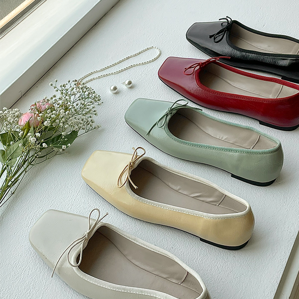 Jenny スクエア リボン フラットシューズ