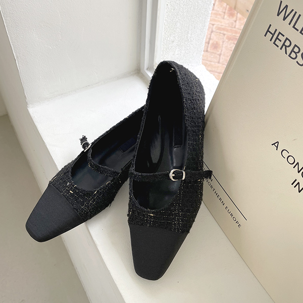 [モデル着用44次]ツイード ポイント 配色 メリージェーン フラットシューズ