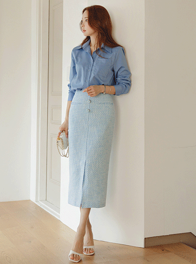 斜線 マーメイド ライン ロング ツイード スカート