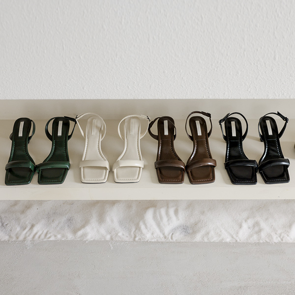 スクエア クッション ストラップ サンダル ヒール