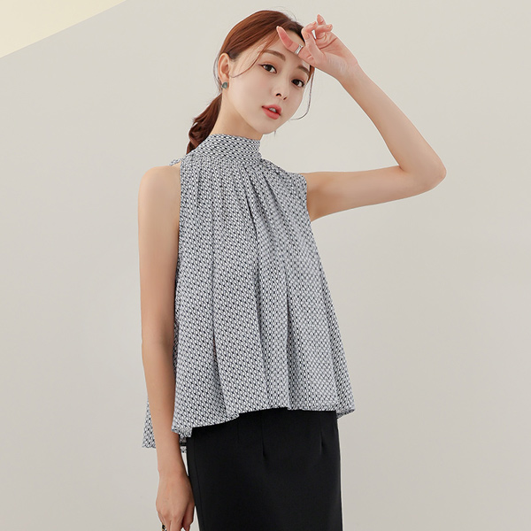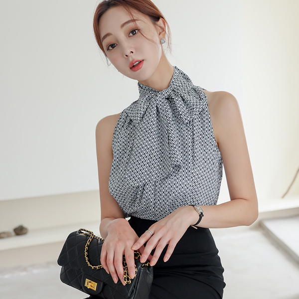 チェーン スカーフ ハイネック 袖なし ブラウス